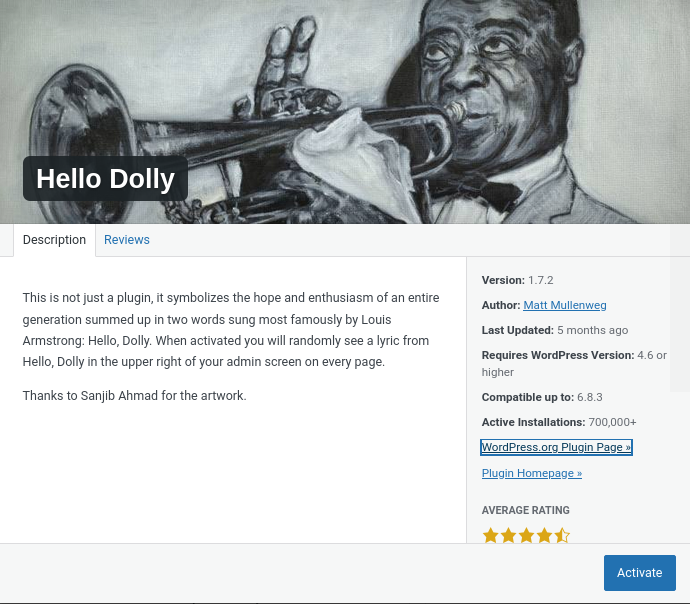 To confirm your WordPress file permissions are correctly set, try installing a harmless plugin such as Hello Dolly. You can do this by going to Plugins → Add New in your WordPress dashboard, searching for “Hello Dolly,” and clicking Install Now followed by Activate.
