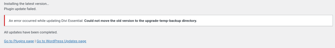 While this is happening you might notice that if you try to update an existing plugin you could see a message about how the plugin update has failed.
